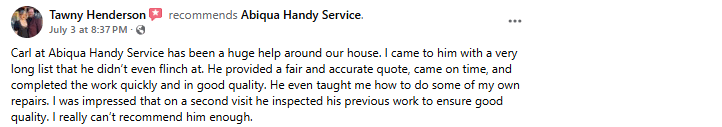Carl at Abiqua Handy Service can be reached at: