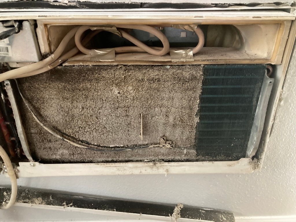 Indoor unit needs to be cleaned at the beginning of every season. Keep up on cleaning the filter to reduce the chance of your unit looking like this.